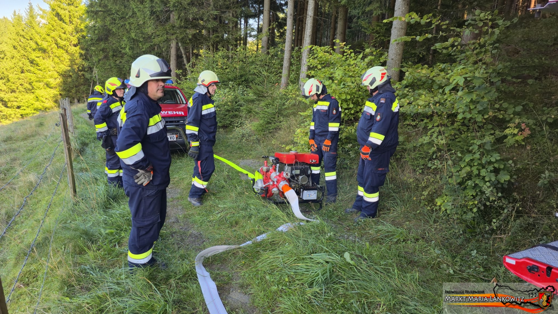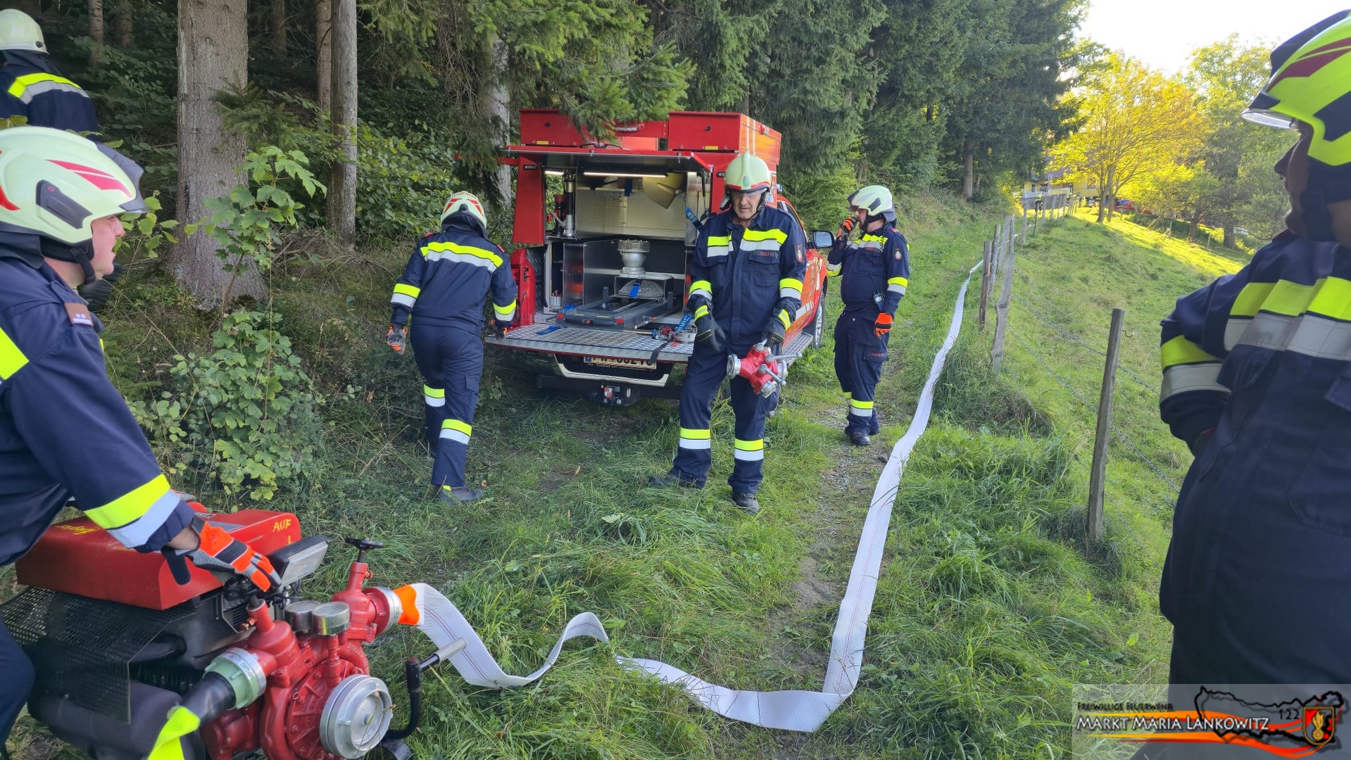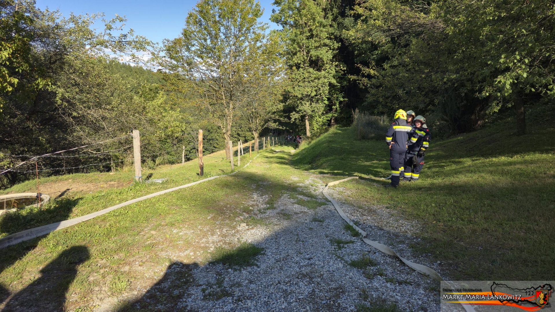 Um die eingesetzten Kräfte mit Wasser zu versorgen war die Hauptaufgabe der Feuerwehr Maria Lankowitz gemeinsam mit den Feuerwehren Köflach und Salla einen Wasserbezug aus einem Bach über eine weite Wegstrecke aufzubauen. Bereits nach etwa 20 Minuten konnte Wasser marsch gegeben werden.