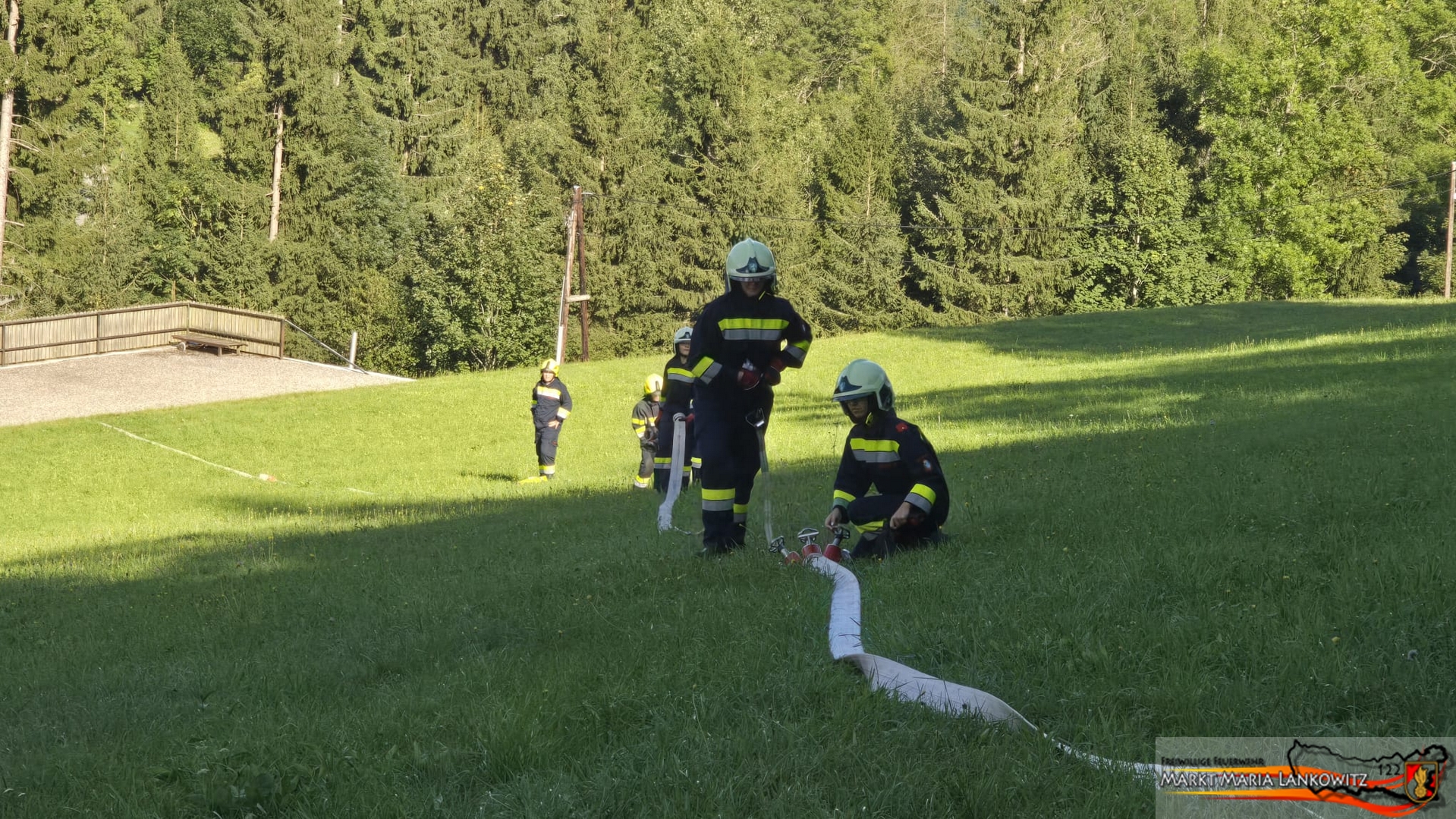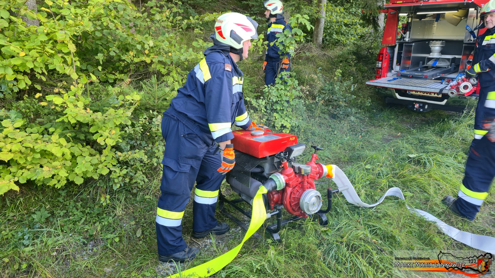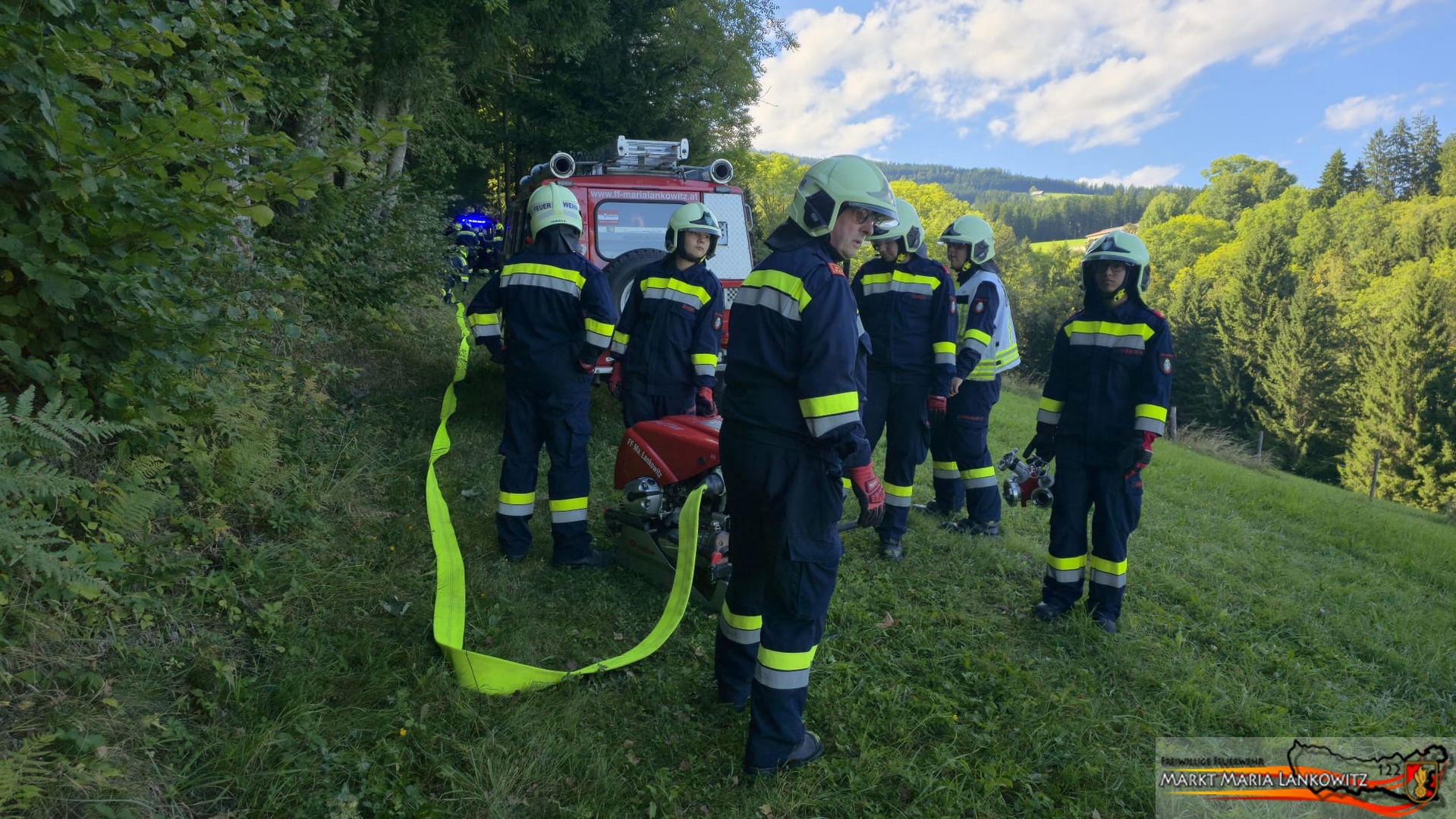 Um die eingesetzten Kräfte mit Wasser zu versorgen war die Hauptaufgabe der Feuerwehr Maria Lankowitz gemeinsam mit den Feuerwehren Köflach und Salla einen Wasserbezug aus einem Bach über eine weite Wegstrecke aufzubauen. Bereits nach etwa 20 Minuten konnte Wasser marsch gegeben werden.
