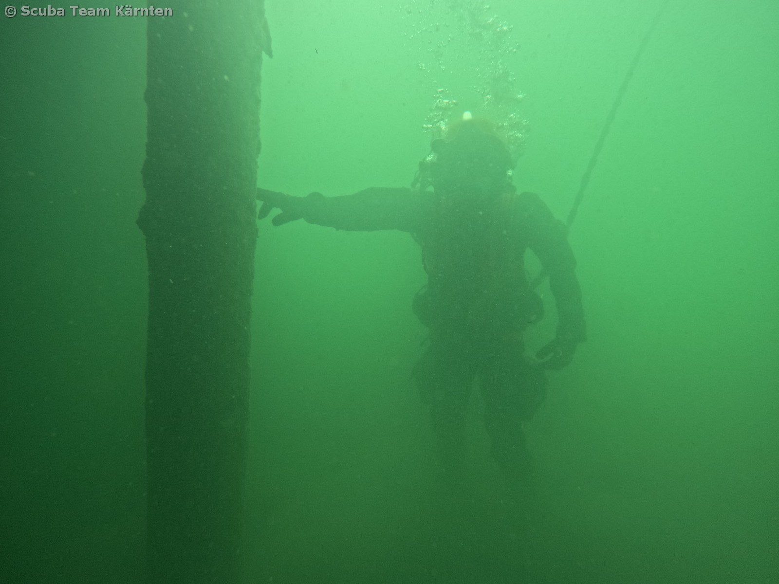 Im Anschluss an die Eröffnung begann die praktische Ausbildung mit einem sogenannten „Checkdive“. Dabei konnten sich alle Taucher mit den spezifischen Gegebenheiten des Pibersteinersees vertraut machen: Während die Wassertemperatur an der Oberfläche angenehme 24 °C betrug, fiel sie in wenigen Metern Tiefe rasch ab – auf nur 6 °C ab ca. 10 Meter. Auch die Sichtverhältnisse unter Wasser waren stark eingeschränkt.
