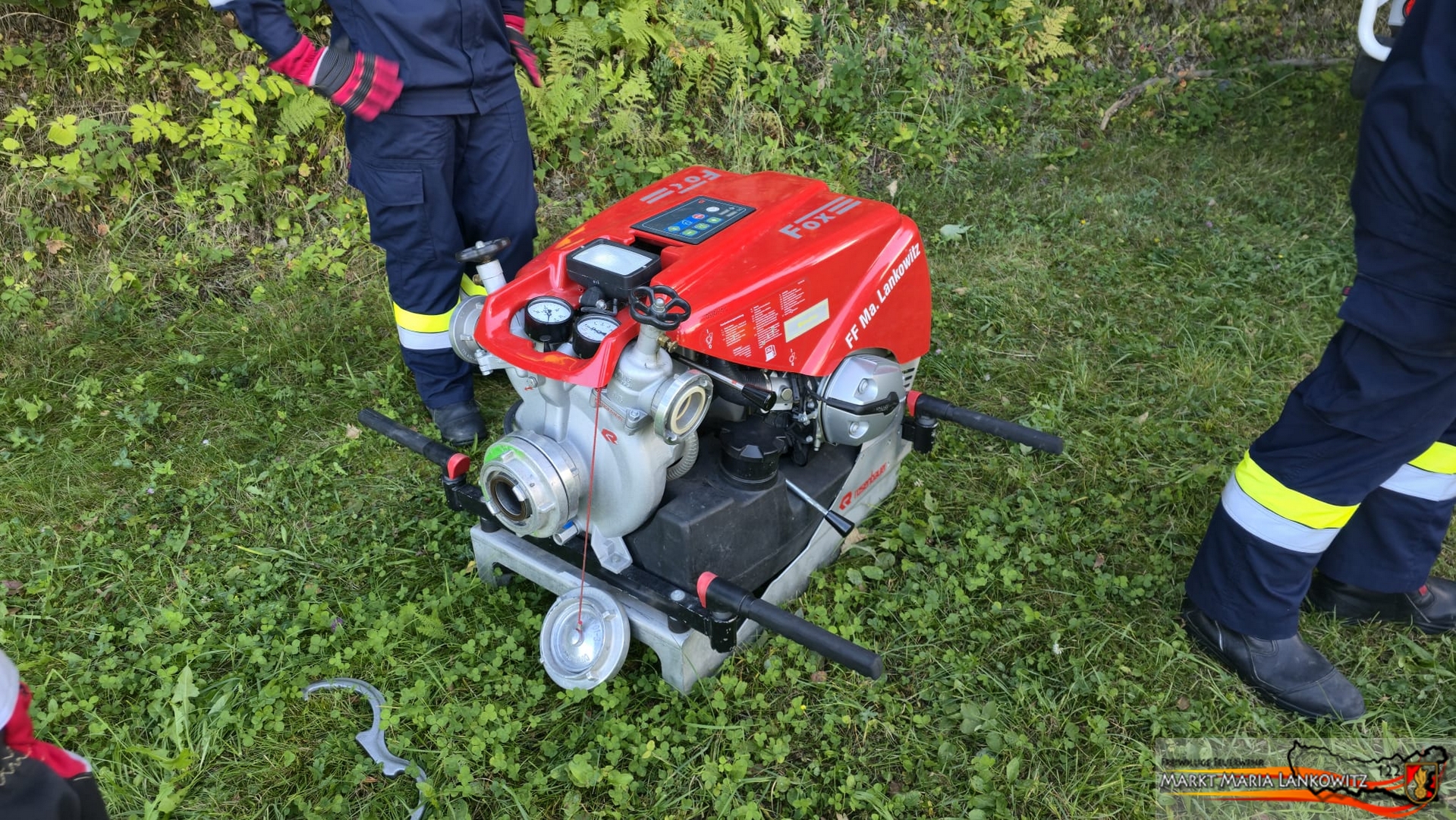 Die aktive Mannschaft wurde in drei Gruppen aufgeteilt, und im Stationsbetrieb wurden verschiedene Schmutzwasserpumpen intensiv geübt. OBM Andreas Schübel leitete die erste Station mit unserer ältesten noch im Einsatz befindlichen Pumpe, einer Bauer-Pumpe, die bereits stolze 60 Jahre auf dem Buckel hat. An der zweiten Station, mit einer ebenfalls benzinbetriebenen Schmutzwasserpumpe, stand OLM Daniel Gratz bereit. Die dritte Station wurde von OBI Daniel Gspurning geleitet, an der mit unserer Chiemsee-Pumpe geübt wurde, die elektrisch betrieben wird. Es sei auch erwähnt, dass auf unserem vor kurzem übernommenen KHD-Rollcontainer zwei dieser Chiemsee-Schmutzwasserpumpen vorhanden sind.